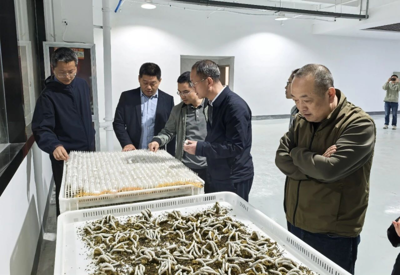 在安吉链码生物科技有限公司,蚕不仅是吐丝的昆虫,更是天然的“生物反应器”。通过基因编辑技术,让蚕宝宝体内表达出重组人血清白蛋白、乳铁蛋白等高价值蛋白,大幅提升了产业的附加值。这里的蚕宝宝生活在一个个方舱中,环境传感器实时监测温湿度、二氧化碳浓度等参数。技术人员在控制大屏上轻轻一点,就能调取每一批蚕的“生长档案”。服务组详细考察了饲料配制、环境控制、病害防控等关键环节,并与企业技术团队就如何进一步降低饲料成本、提升抗病能力、提高蚕沙利用等问题进行了深入探讨。