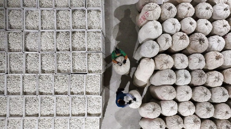 近日,在重庆市铜梁区大庙镇东森村桑枝食用菌基地,20多位农民工有的粉碎桑枝,有的操作流水线机器制作菌包,有的采摘
